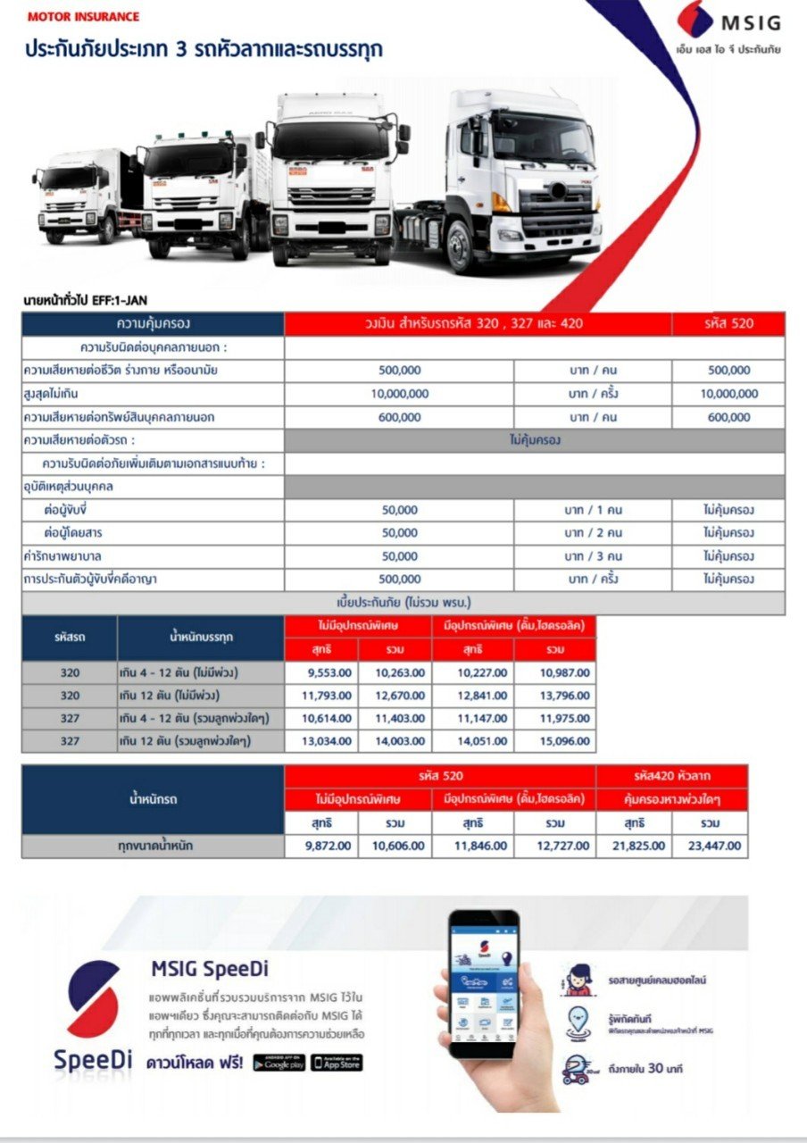 ประกันรถบรรทุก ชั้น3 รถบรรทุก มีวงเงินค่ารักษาพยาบาล เสียชีวิต