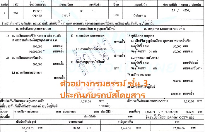 ในกรมธรรม์ประกันภัยจะต้องขึ้นต้น หรือระบุในเนื่อหากรมธรรม์เป็น รหัส 220 เเละ จำนวนที่นั่งต้องตรงตามที่ยื่นจดทะเบียน กับสำนักงานขนส่ง