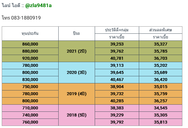 ยกตัวอย่างตารางเบี้ย ประกันภัยรถยนต์ ชั้น1 วิริยะ รถตู้เชิงพาณิชย์